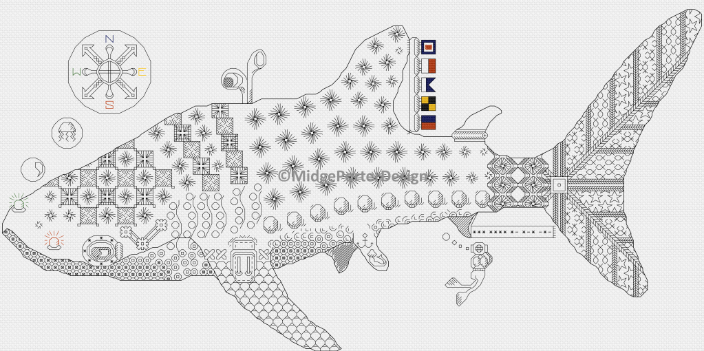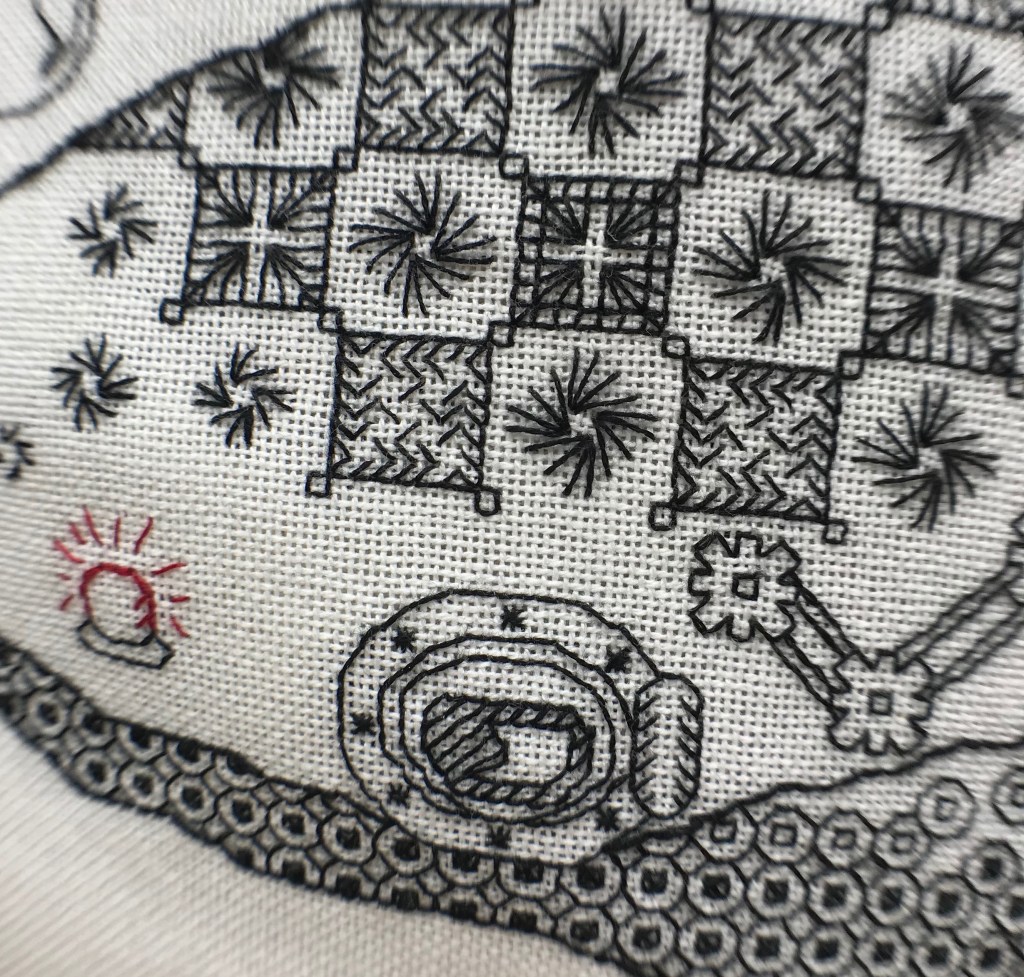 My blackwork embroidery designs are based upon traditional 16th Century Elizabethan blackwork stitchwork. Using historical influences as my inspiration, I create both traditional and fresh, up-to-date, modern designs – often with a quirky sense of humour.