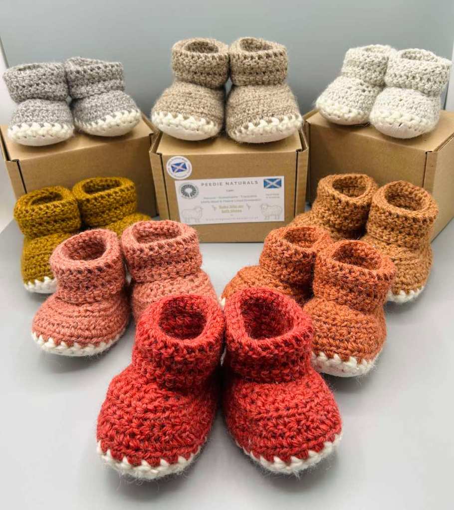 I have developed the ‘Peedie Naturals’ range for babies (‘peedie’ is Orcadian for small). The range uses pure non-superwash wool, alapaca, and speciality yarns.
