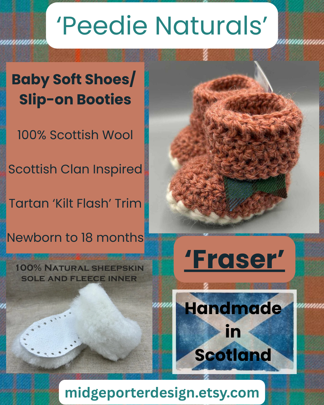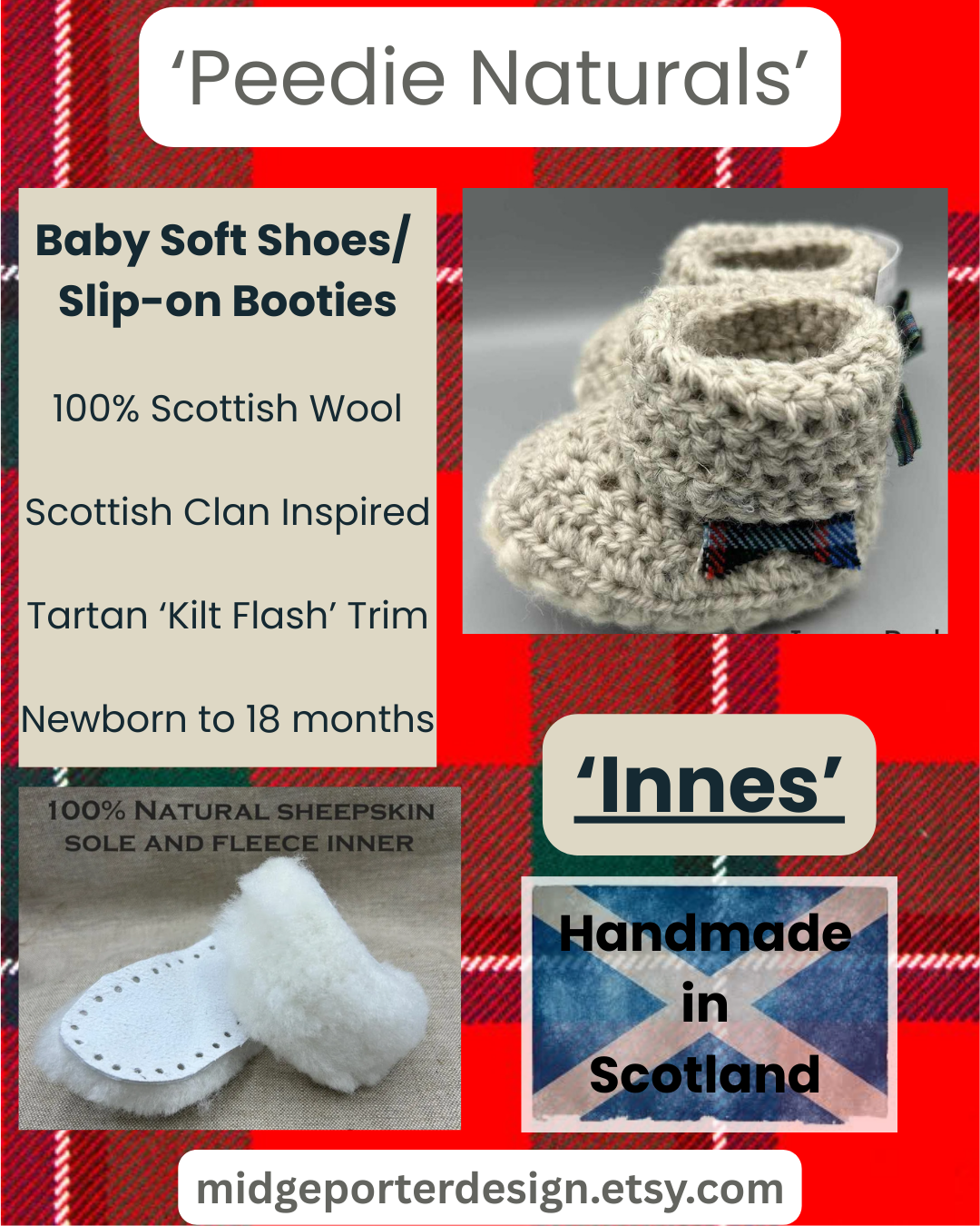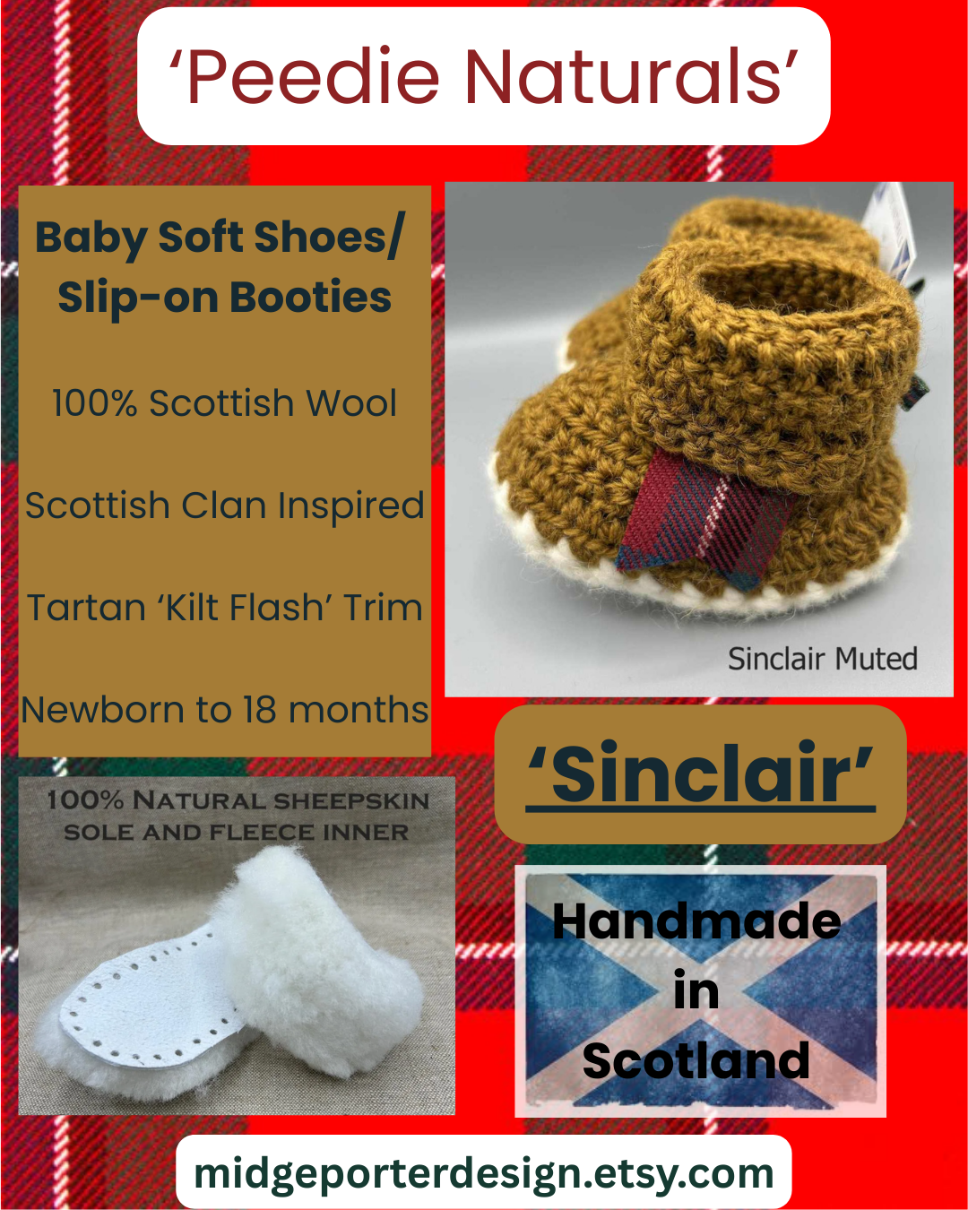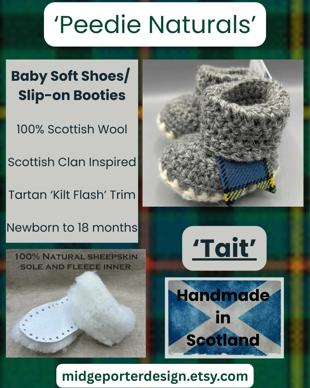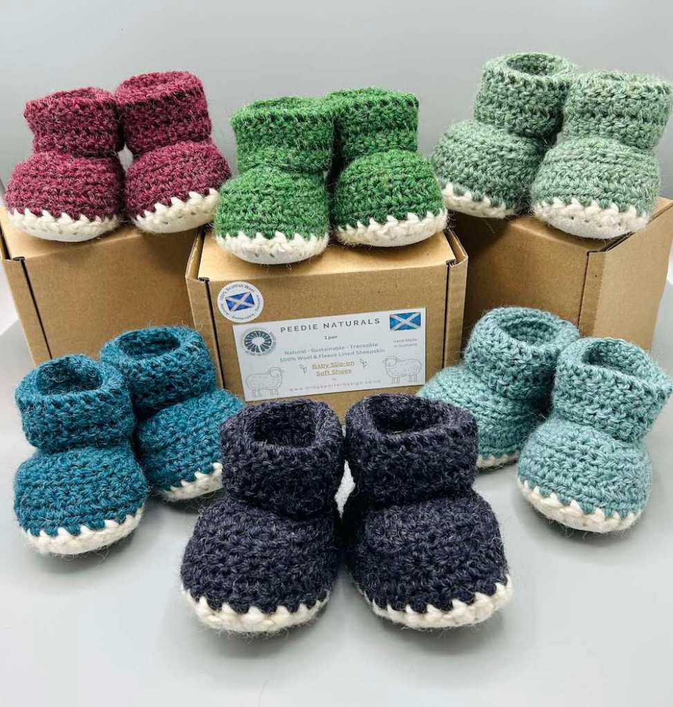 All of the ‘Peedie Naturals Slip-on soft shoes have 100% sheepskin soles and soft fleece inners. The sheepskin is sourced from the Isle of Skye, Scotland, UK