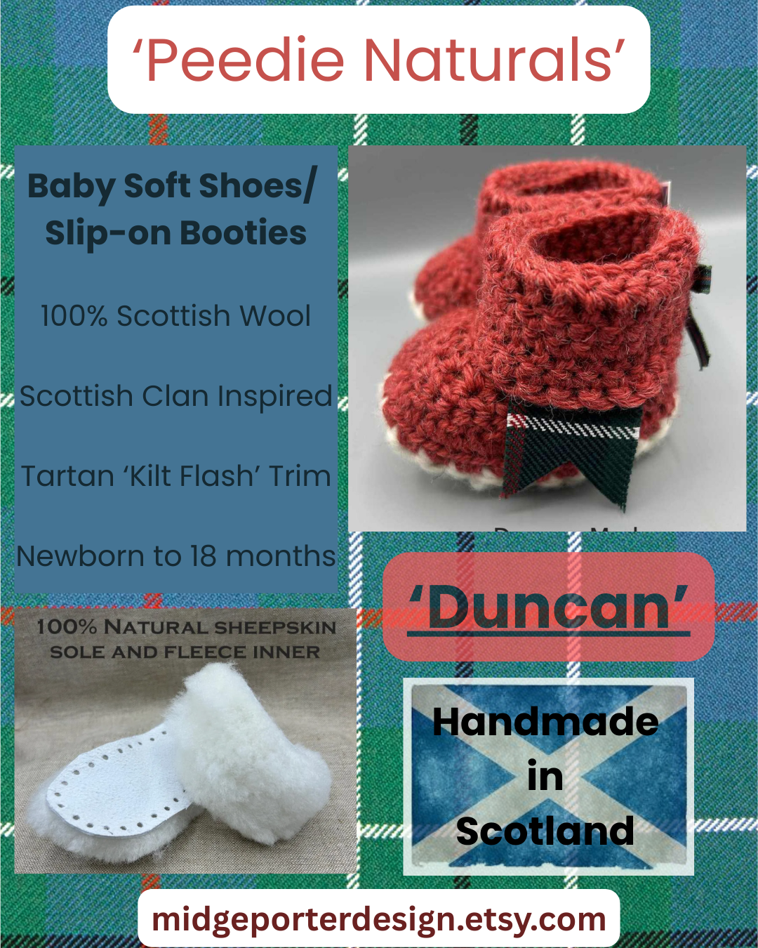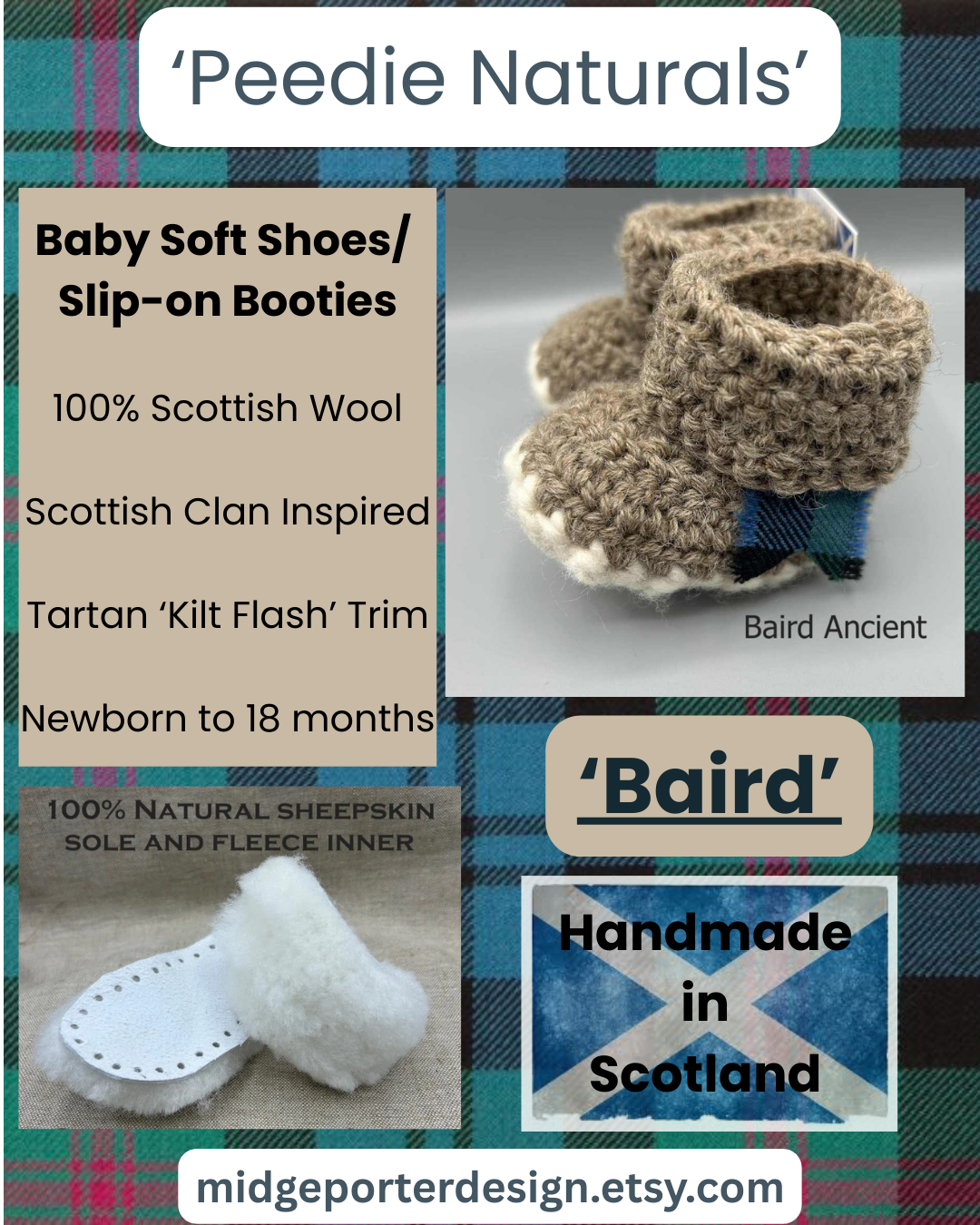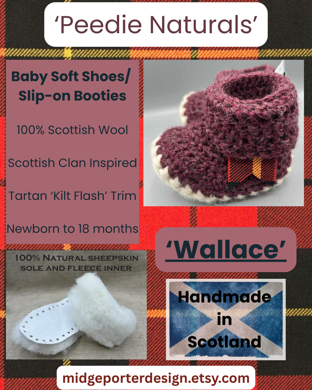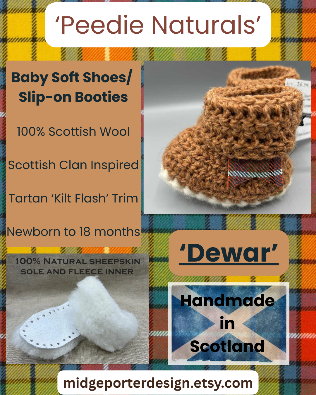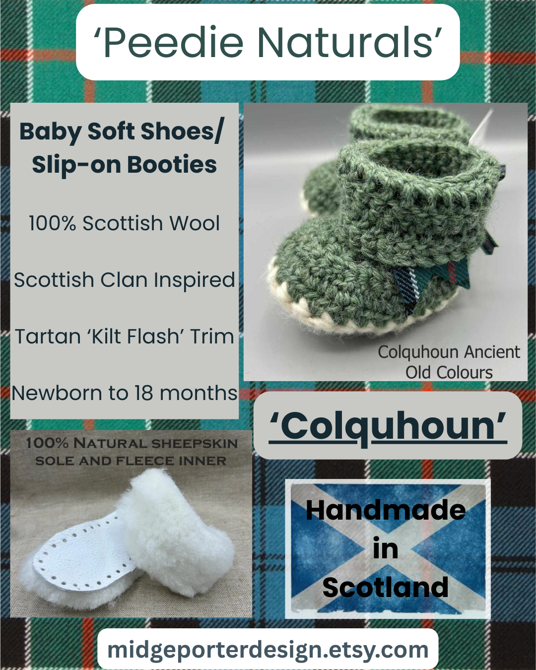 All of the ‘Peedie Naturals Slip-on soft shoes have 100% sheepskin soles and soft fleece inners. The sheepskin is sourced from the Isle of Skye, Scotland, UK